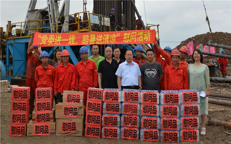 入夏以来,持续的高温给野外一线职工带来严峻的考验,面对酷暑,他们依然坚守在各自的岗位上辛勤地工作,7月9日,党委书记祖秉新带领党办主任王宇飞等一行,深入到所万昌地热施工现场,为烈日炎炎中奋战在一线的党员干部职工送去了一份“清凉”。本次“党委进一线,酷暑送清凉”活动,党委共送去纯净水、酸梅汁、毛巾、白糖、蚊香、清凉油、藿香正气水等防暑降温物品300余份,随行人员还现场为职工普及了夏季防暑降温小常识,把党组织的关怀送到了一线职工的心坎上。同时也通过本次活动督促野外生产经营单位,务必做好防暑降温工作,进一步强化安全措施,做好夏季和汛期安全生产工作,注意日常的饮食卫生,确保一线职工的身心健康,确保职工安全度夏。