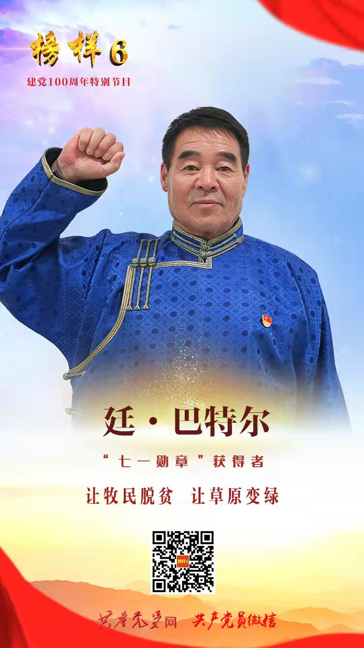 他是新中国开国少将廷懋之子,响应党和国家号召,离开“将军家庭”,插队到锡林郭勒盟萨如拉图雅嘎查成为一名普通牧民,一干就是40多年。他探索“蹄腿理论”,引导牧民“减羊增牛”,带头开展“围栏轮牧”,改变牧民“靠天养畜”的习惯,并通过种植沙柳、杨柴、榆树等,改善了草原生态。他带领牧民探索产业脱贫之路,组织牧民成立嘎查股份制公司,发展奶制品、风干肉加工和旅游产业,嘎查牧民人均收入从1983年的200元增加到2018年的24460元,公司解散后,他把获得的251万元收益分给38户牧民。他在农牧民培训基地当“讲师”,用通俗易懂的语言向牧民宣讲党的惠牧政策、生态保护、科学养畜和理财知识,把自己几十年钻研摸索出来的经验毫无保留地传授给牧民。