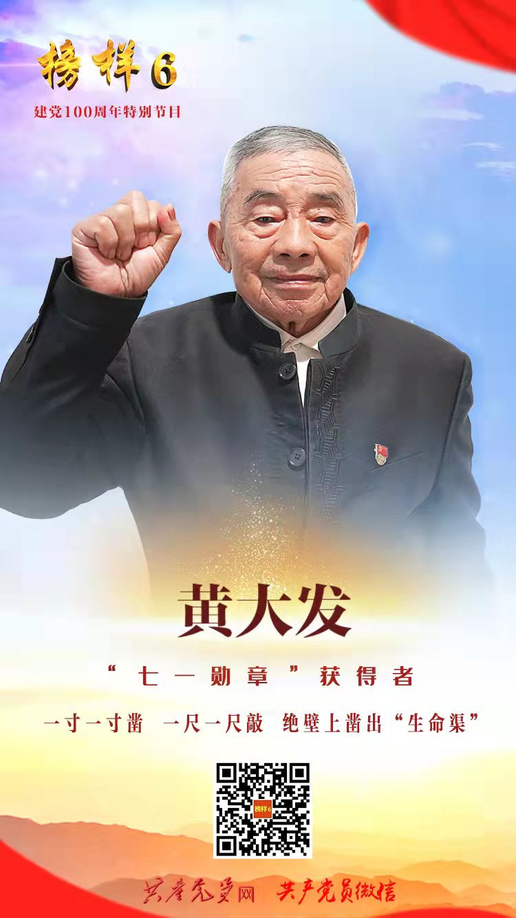 他一心为民、埋头苦干、百折不挠。为解决草王坝村山高石多、缺水严重的问题,他带领村民历时36年,靠着锄头、钢钎和铁锤,建成一条跨3座大山、大小9个悬崖,主渠长7200米、支渠长2200米的“生命渠”,兑现了“水过不去、拿命来铺”的铮铮誓言,为改善山区群众用水条件、实现脱贫致富作出巨大贡献,被誉为“当代愚公”。他坚守初心使命,带领群众脱贫致富。无论是在村干部任上,还是离任后,他心里始终装着群众,千方百计带领村民发展生产。村里缺什么,他就带头干什么;群众期盼什么,他就谋划推动什么。村里通水后,他又先后组织了通电工程、通路工程,彻底改变了村民用电和出行问题。他说:这是我作为一名共产党员的使命。在黄大发精神的感召下,近年来,村“两委”班子带领村民发展中药材,种有机稻米、有机高粱,发展精品水果产业,养殖肉牛、生态猪、蜜蜂等,群众的生活发生翻天覆地的变化。2019年底,该村顺利脱贫出列,全村建档立卡人口全部脱贫。
