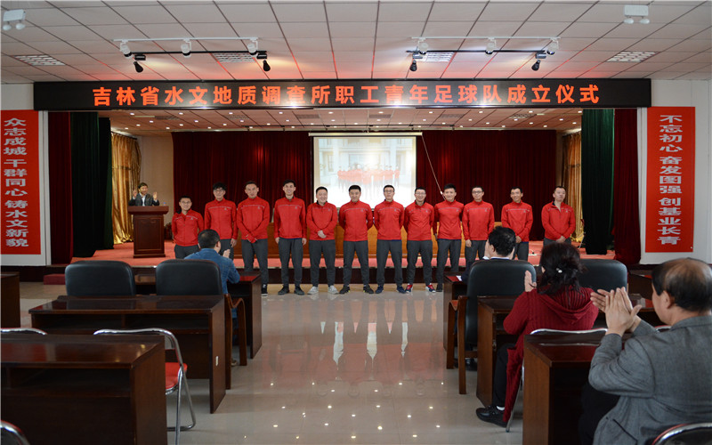 副所长孙姿禄为成立仪式上致辞,他说,职工青年足球队的成立,是水文所职工文化生活不断进步的标志之一。近年来,所党委、工会高度重视职工文化工作,站在全方位提高职工素质、传承地矿文化,促进和谐的高度,大力加强、积极倡导和推动职工文化工作,正是在这样的大背景下,所青年足球队应运而生。他要求足球队要处理好训练、比赛和工作的关系,利用业余时间比赛训练,同时必须做好安全工作。号召全所青年要把赛场上团结、拼搏、奋斗的精神带到工作中,充分展示出地质人特别能吃苦特别能战斗的精神和坚韧不拔的毅力、勇于胜利的斗志,为水文所的发展贡献力量。