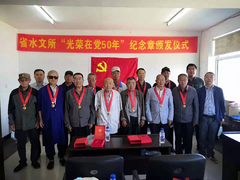 (本网讯)6月17日,省水文所在范家屯新凯河基地举行“光荣在党50年”纪念章颁发仪式,向11名党员代表颁发“光荣在党50年”纪念章,将党的关心与关爱及时传递给老党员们。副所长王国良出席仪式并为党员代表颁发纪念章,离退休第一党支部书记谢贵明主持活动。所2名党委委员参加了活动。