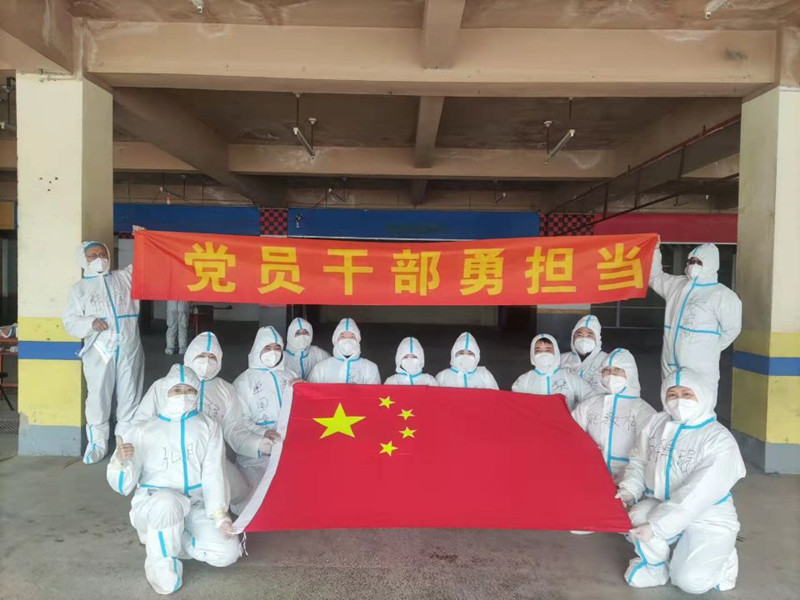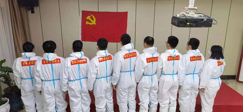 党旗引领,众志成城。所党委坚持用党旗引领,在社区防控一线凝聚抗疫合力,针对党员居住分布实际 ,党委号召党员加入所在社区临时党支部,与社区党员并肩执守,用“红色引擎”凝聚抗疫合力。3月12日,省水文所首批参加“省地矿局防疫志愿服务队”人员上岗。3月25日,第二批参加省直机关支援净月分局志愿服务队到位。至3月20日省水文所有30名党员干部下沉社区参与“敲门行动”及“战疫情,我先行”等行动。所班子成员带头下沉社区参与日常防控工作,已下沉党员干部无条件服从社区安排,有近20名党员参加了所在社区临时党支部,在防控一线较好地发挥了党员的先锋模范作用,谱写了一曲曲感人至深的乐章。