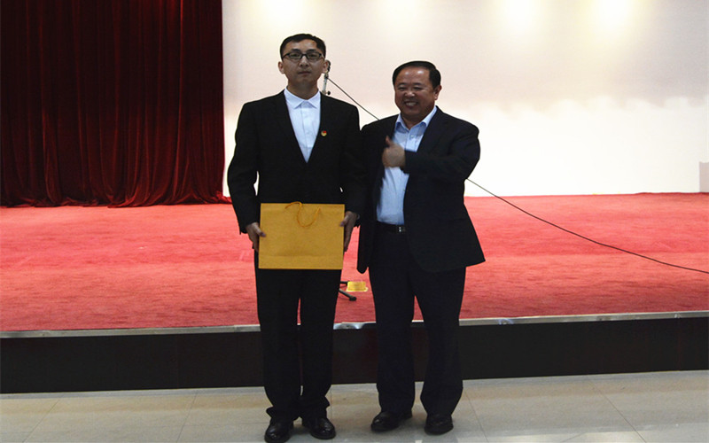 (演讲、诗朗诵比赛一等奖获得者王多与祖秉新所长合影)