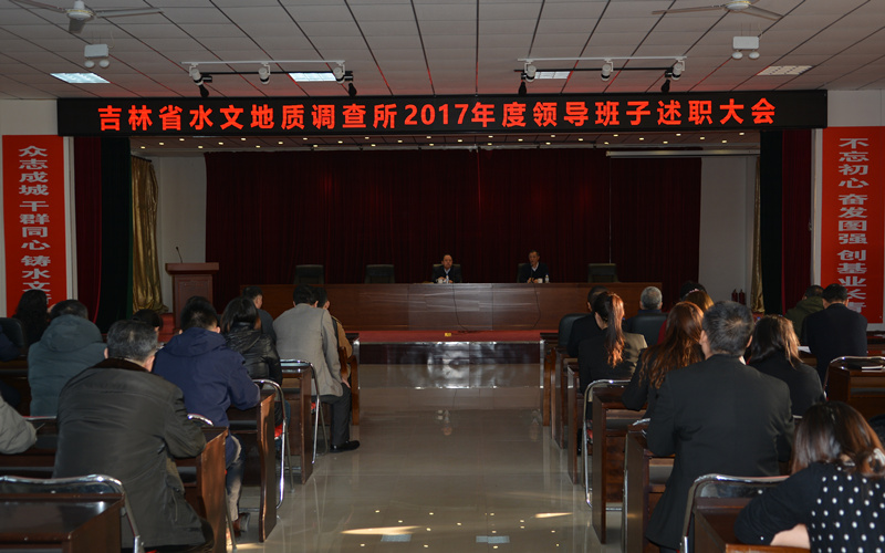 (本网讯)按照省地矿局党组的统一部署,2月6日,我所召开了2017年度领导班子述职大会,所党委在局考核组的指导下召开了2017年度领导班子民主生活会。省地矿局党组成员、副局长李国栋一行7人考核组到会指导。所机关、地质140余人参加了述职大会。