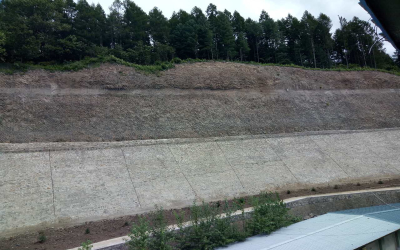 (图为黄泥沟项目挂网喷播混凝土现场)
