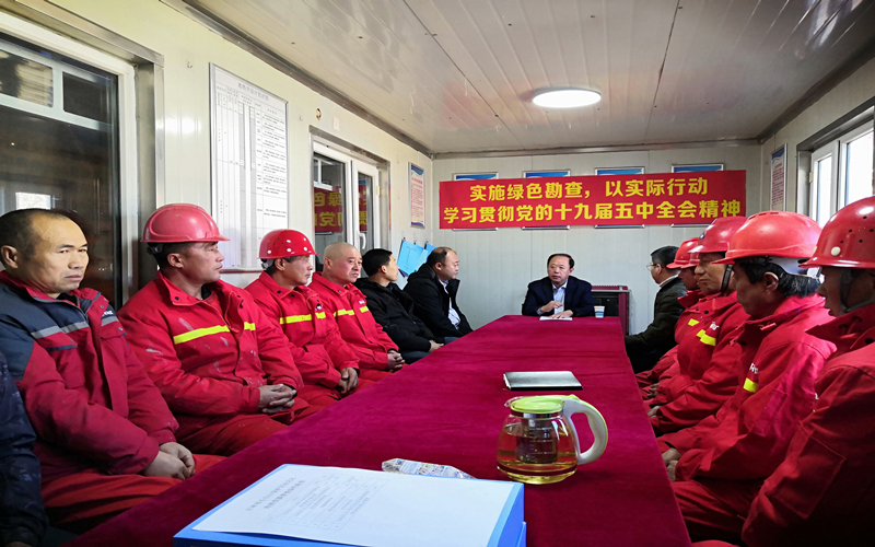 11月10日,党委书记祖秉新来到地热勘查公司二道白河钻探施工现场宣讲。面对一线干部职工,他深入浅出地讲解了党的十九届五中全会概况、重大意义、主要精神等,联系实际提出抓好项目施工,确保项目质量、项目安全、文明施工等要求。在绿色勘察方面他强调:“党的十九届五中全会对推动绿色发展提出了明确要求,我们一定要把全会精神贯彻落实到项目实施的全过程。这个项目是我所重点项目,是几年来第一个采用泥浆固化程序进行施工的项目,也可以说是全省绿色勘查的试点项目,因此我们更要高度重视,严格按照施工组织设计要求施工,抓好每个环节、每个细节。要立足我所“服务地方、造福社会,建设一支省内同行业一流队伍”的发展定位,把绿色发展理念贯穿于项目施工全过程,贯穿我所“十四五”发展全过程,争当地热勘察高质量发展的排头兵,以实际行动学习贯彻落实好党的十九届五中全会精神”。
