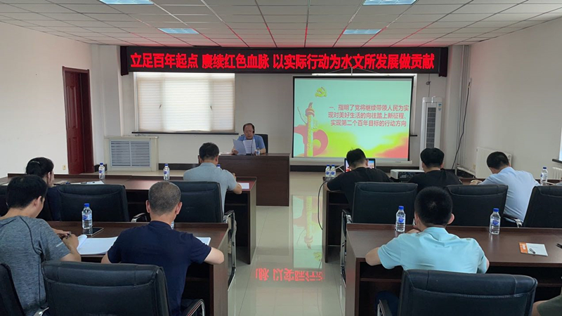 领导干部积极带头开展学习研讨,到分管领域、所联系党支部开展宣讲;解读“七一”重要讲话蕴含的新思想、新理论、新内涵,结合各自分管工作实际谈体会;7月8日所党委召开第七次理论中心组学习会,专题学习习近平总书记在中国共产党成立100周年上的重要讲话精神,并集中进行了学习研讨;7月23日党委书记、所长祖秉以“立足百年起点,赓续红色血脉,以实际行动为水文所发展做贡献”为题为全所党员干部上了党课,解读阐释了总书记重要讲话的重大意义、丰富内涵、核心要义等,并强调班子成员、全所党员干部在学习贯彻落实总书记的重要讲话精神上,必须要站稳人民立场,要始终向总书记看齐、向党中央看齐,要时刻坚守共产主义的初心,坚定共产主义的理想信念和对革命的挚着精神,扎实践行以人民为中心的发展思想,在我们单位的发展中团结一心,不懈奋斗,在困难面前不低头,在挑战面前不气馁,立足百年起点 牢记初心使命,用总书记的讲话精神指引我们不断前行,全面践行习近平生态文明思想,为生态吉林和水文所事业发展做出我们地质人的贡献。